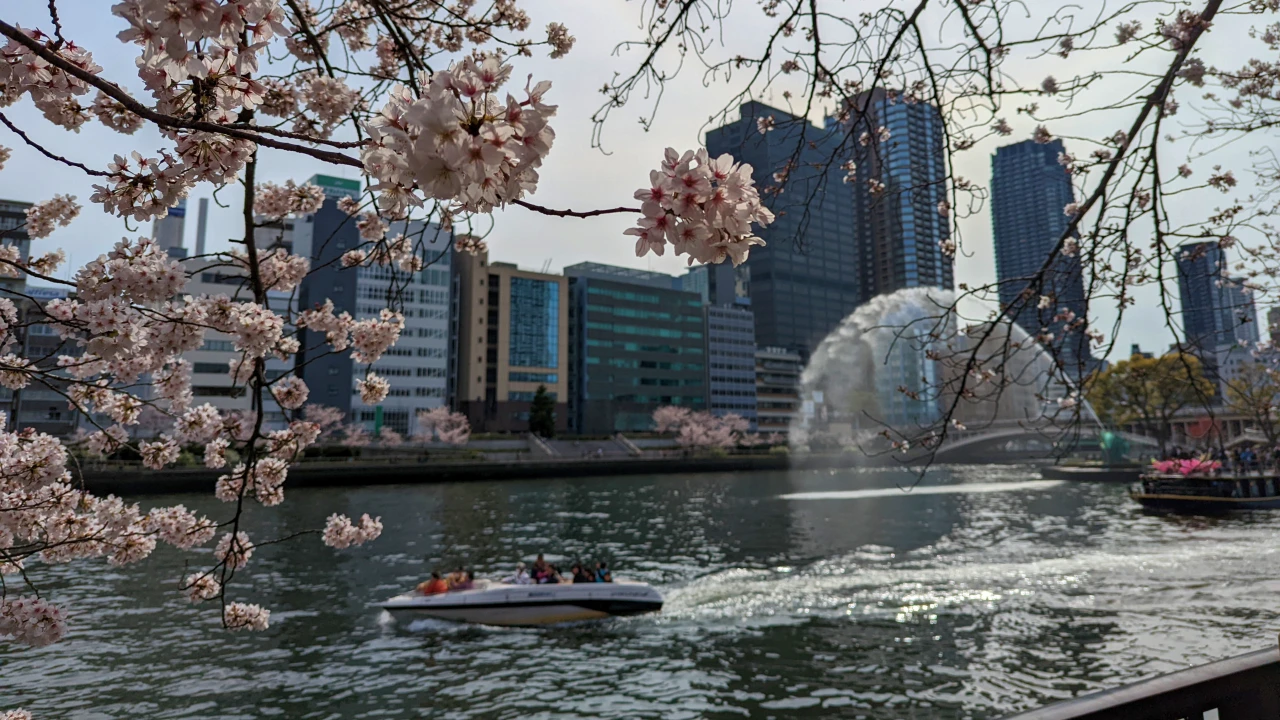 春の桜がきれいな大川沿いにある南天満公園を紹介