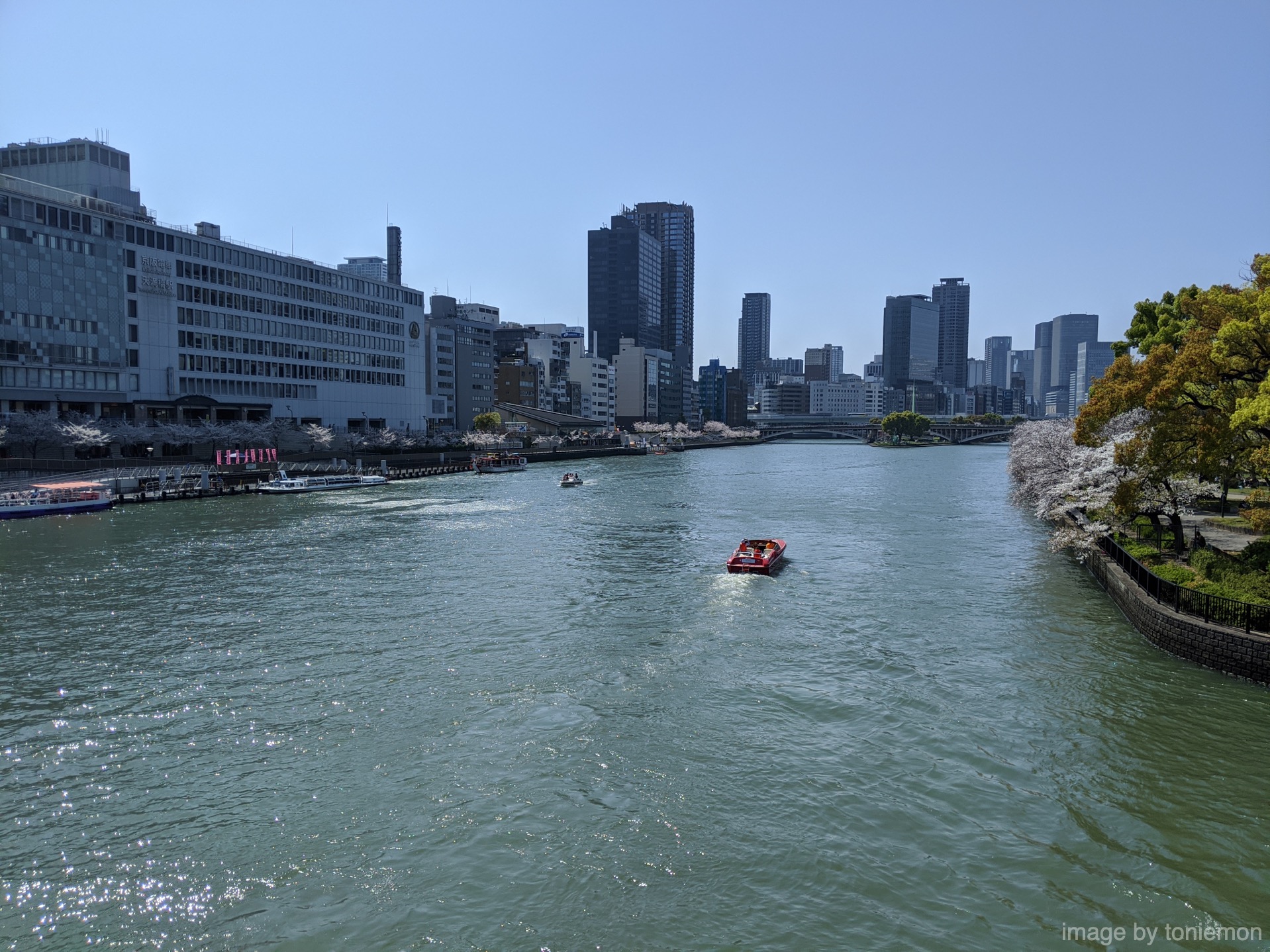 どうしても車で桜の通り抜けに行く必要のある方は、天満橋駅の方の駐車場を利用して、そこから歩いて行くのが良いと思います。